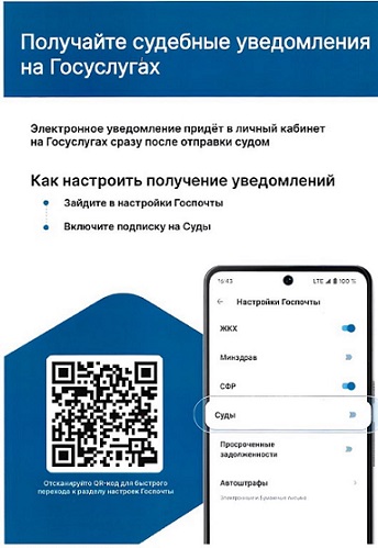 Чтобы подключить судебные уведомления на «Госуслугах», нужно: